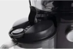 The juicer features a durable stainless steel cutting filter for efficient performance and long-lasting use. A large pulp container allows continuous juicing without frequent emptying, making it ideal for daily use. The easy-to-use control system ensures smooth operation for beginners and experienced users alike.